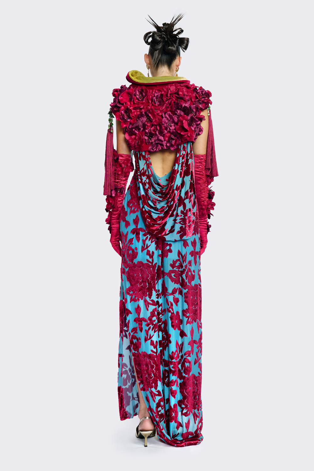 Velvet Floral Slit Open-Back Dress