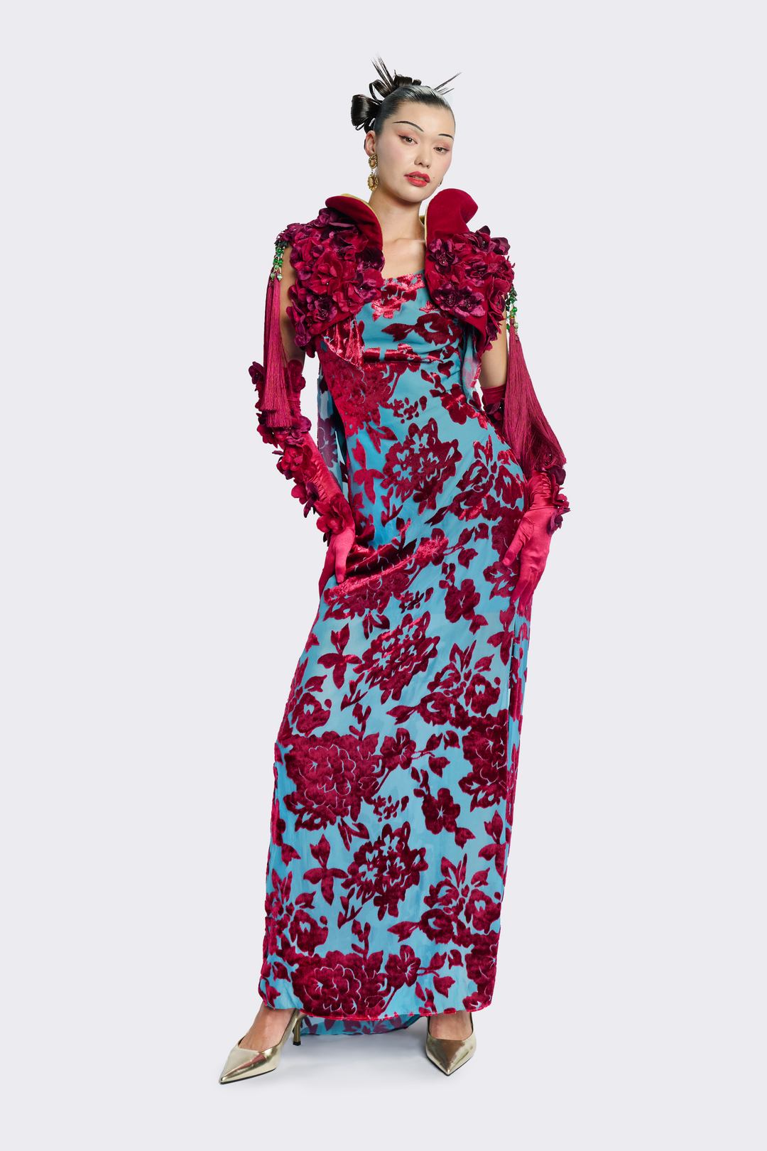 Velvet Floral Slit Dress