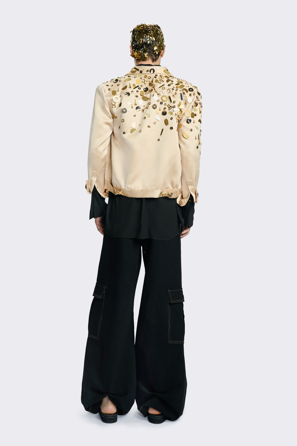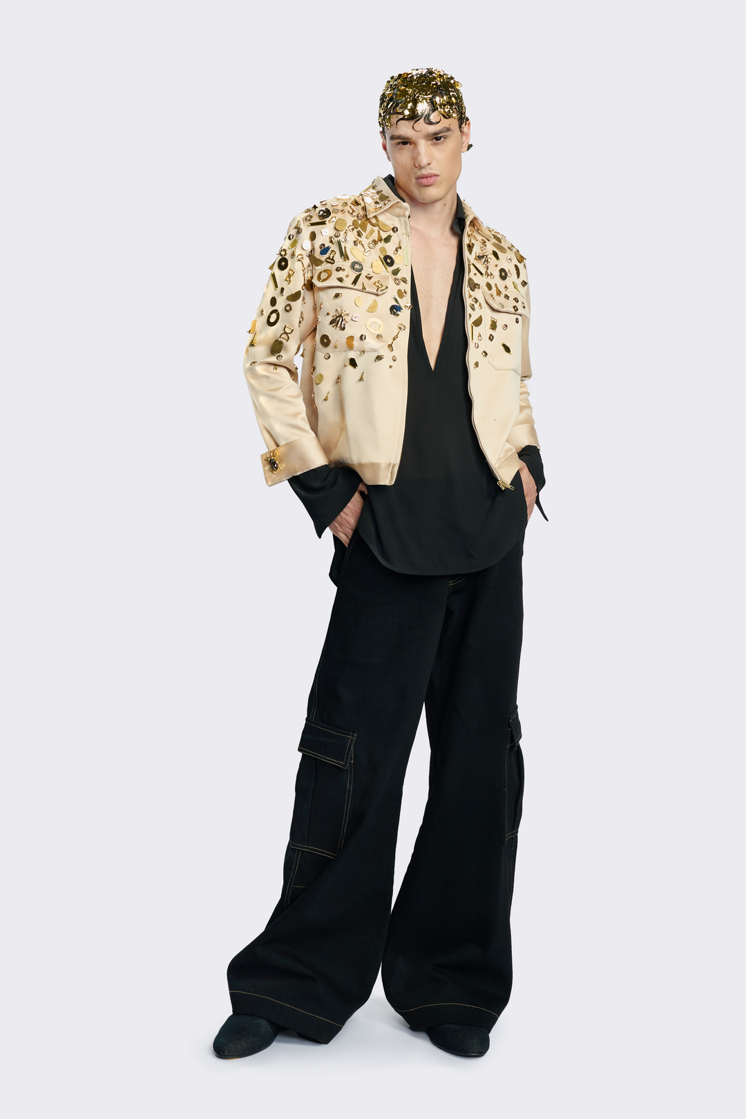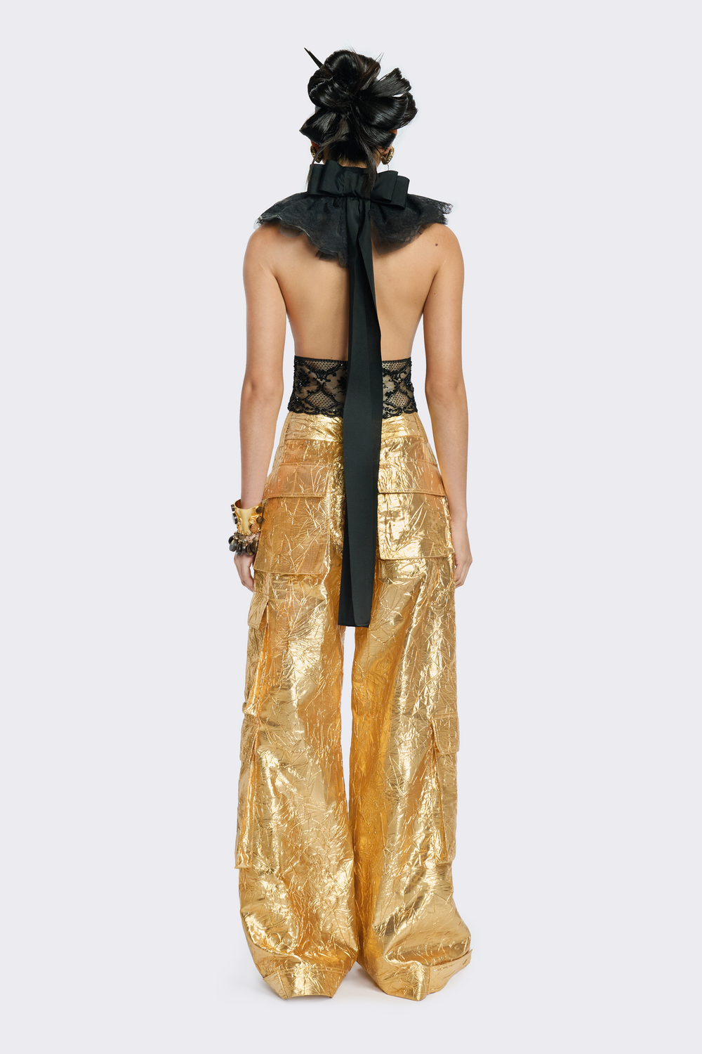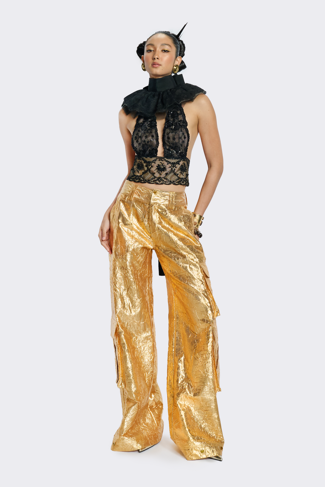 Gold Wide-Leg Cargo Pants