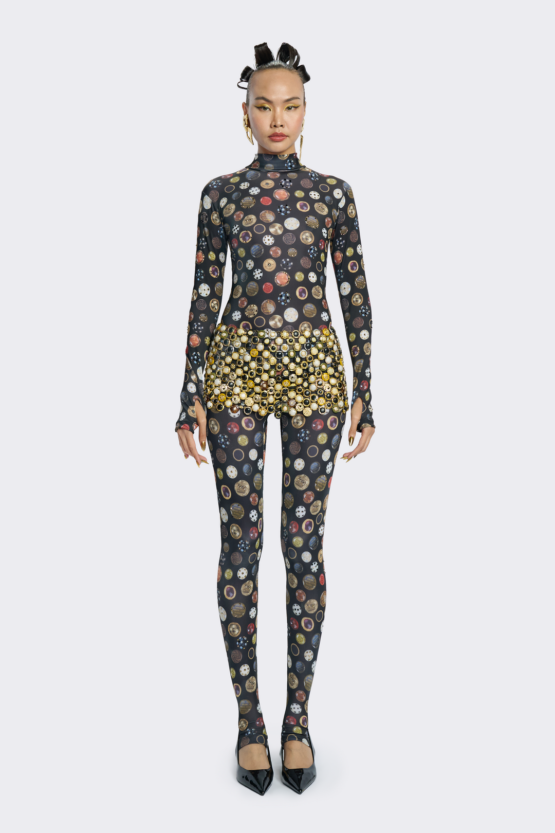 Long-Sleeve Button-Print Bodysuit