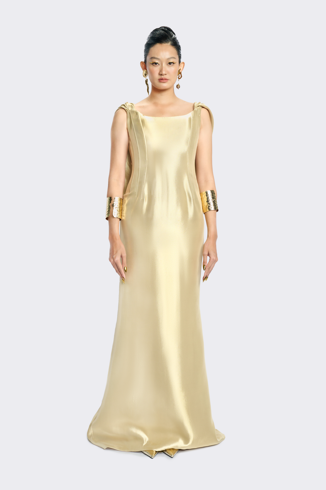 Light Gold Crepe Sleeveless Dress