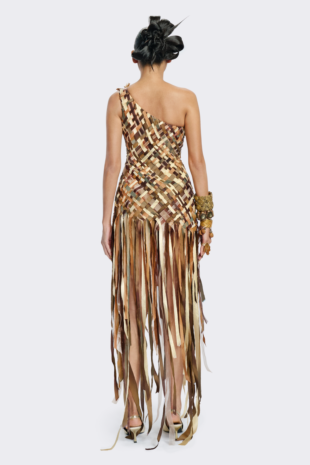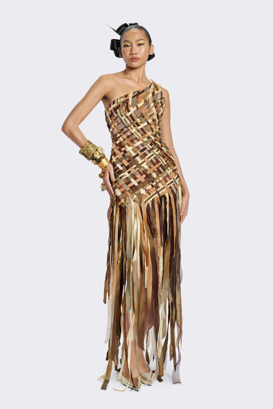 One-Shoulder Pla Tapian Silk Dress